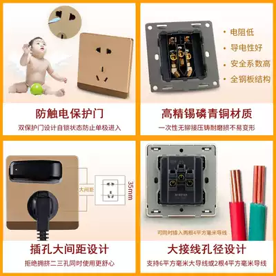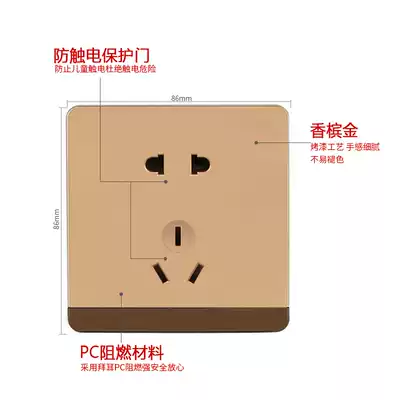 Type 86 wall switch socket panel porous household concealed champagne gold two or three plug 5 five five hole power socket