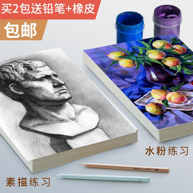 100 sheets of lead drawing paper sketch paper 2k4K8K16K sketchbook wholesale art watercolor paper gouache paper A4 hand-drawn sketchbook color lead painting special blank picture book children's drawing paper eight open
