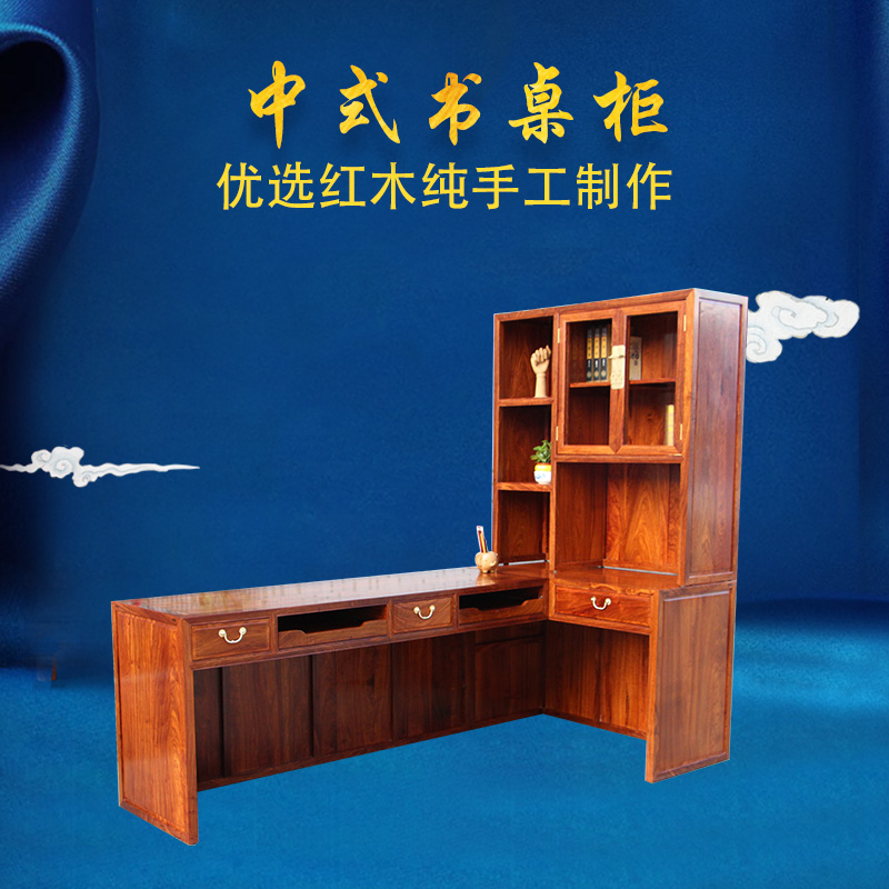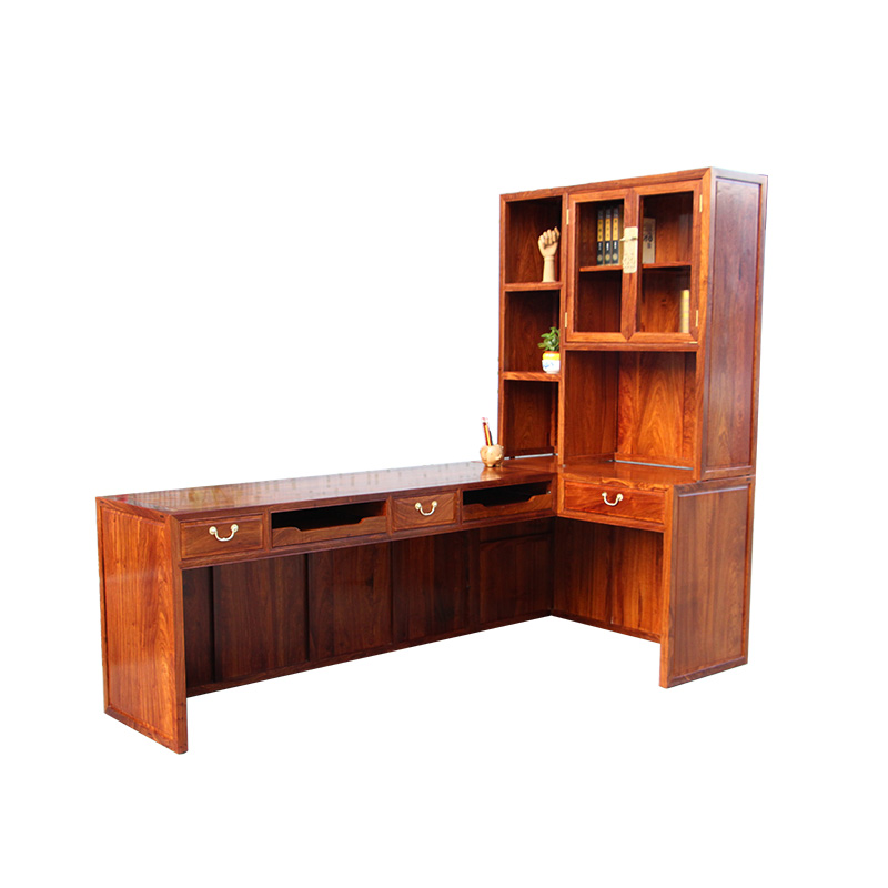 Desk bookshelf One-piece table Corner bookcase Small apartment bay window cabinet Corner small room Solid wood L-shaped desk customization