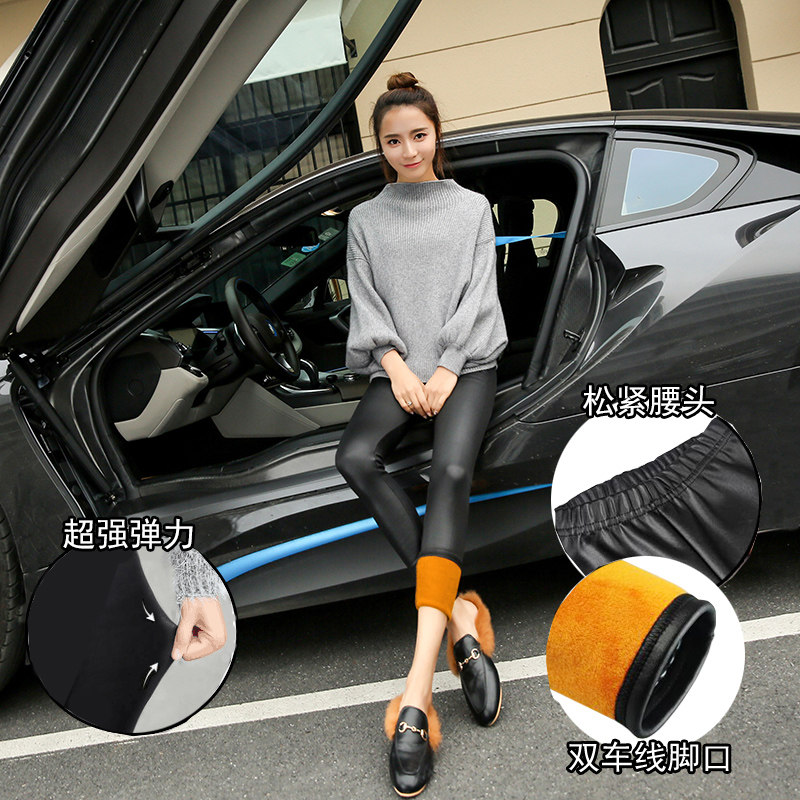 Thickened plus fleece leggings autumn and winter 2020 new ladies high waist Korean version black outer wear imitation leather pants