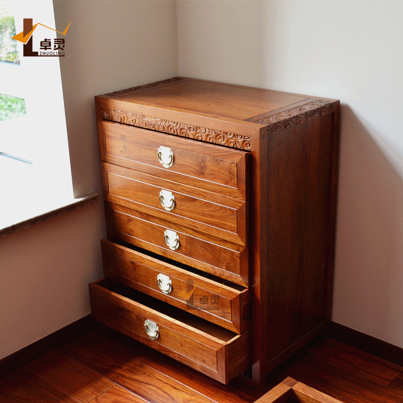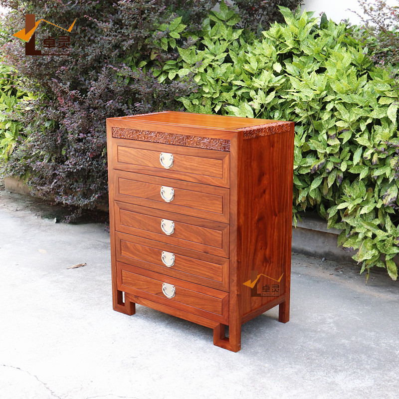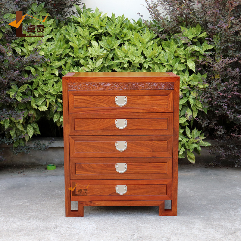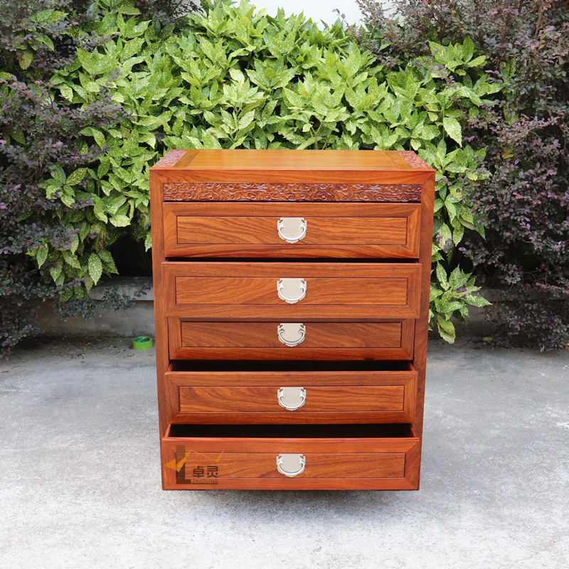 Hedgehog Purple Sandalwood Red Wood Five Bucket Cabinet Solid Wood Furniture Bedroom Containing Cabinet Drawer Cabinet New Chinese Flower Pear Wood Containing Cabinet