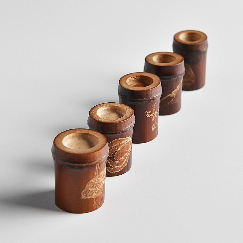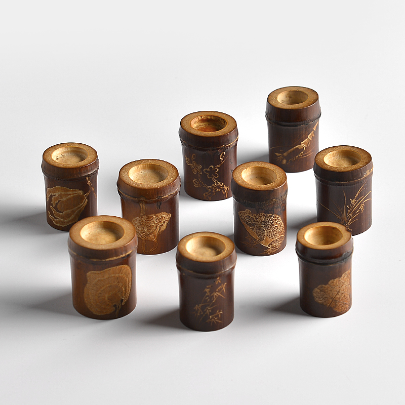 Love tea house old coal bamboo hand carved lid set pot cover rack cover set aside Kung Fu Tea Road spare parts single only 1