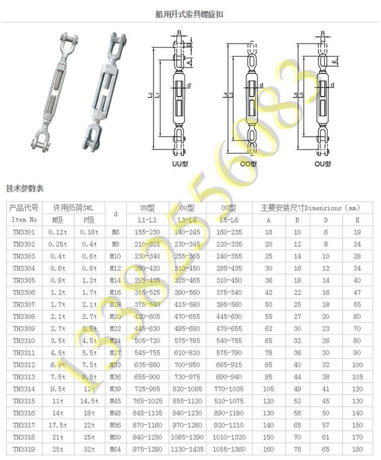Marine flower blue screw M42 heavy flower basket GB3818 UU type GB561 Marine flower blue rigging spiral buckle