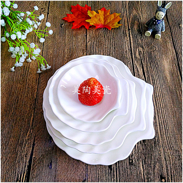 Creative western plate hotel tableware pure white European-style ceramic plate home cake snack plate special-shaped plate