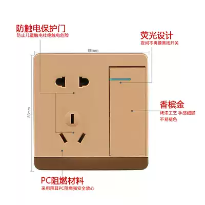 Dunlop type 86 wall switch socket panel Champagne gold one-open 5 five-hole single control switch household concealed