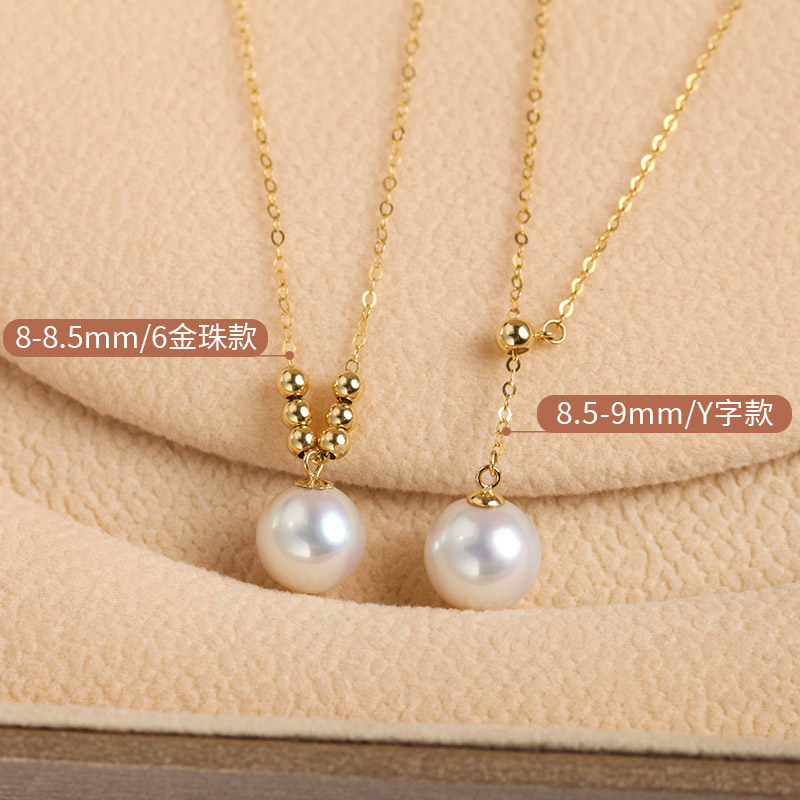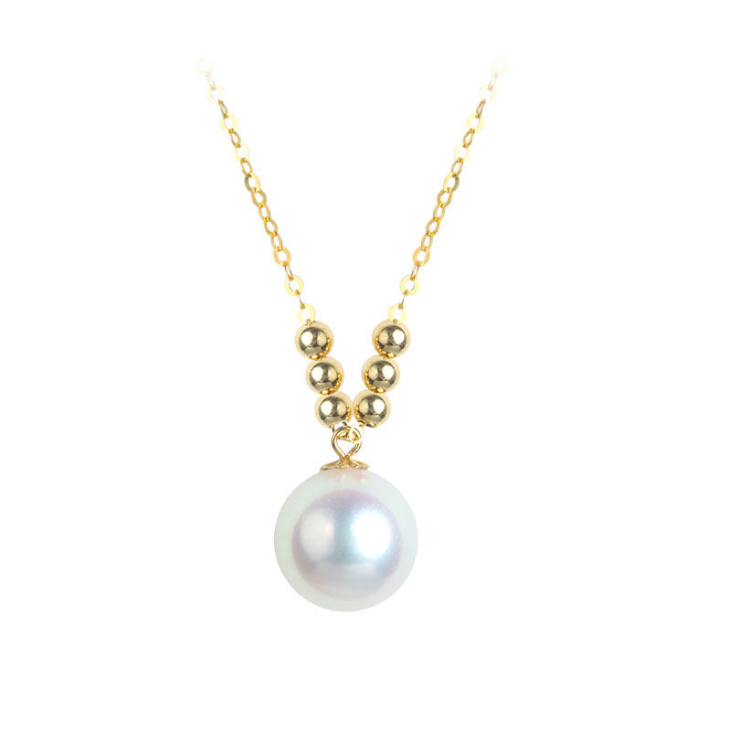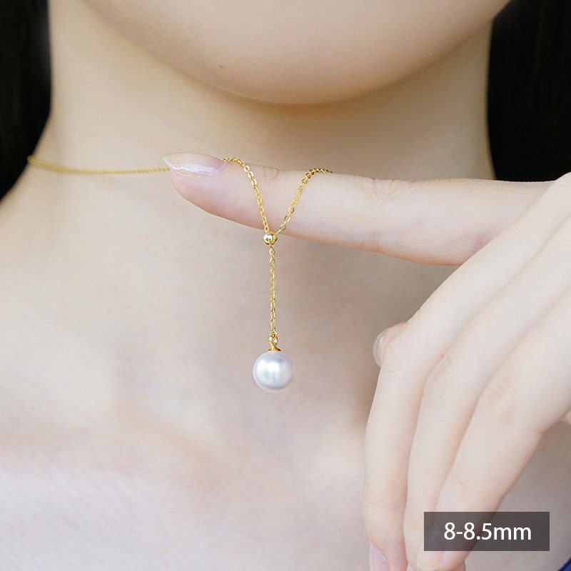 (Shivani)Japan akoya pearl pendant fashion adjustable straight round high gloss 18K gold chain