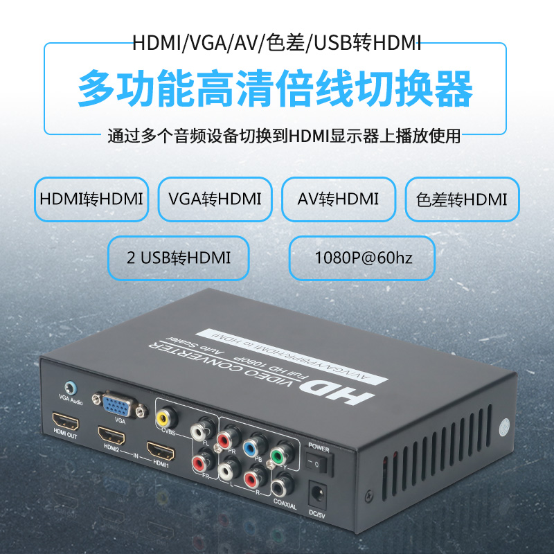 Youting CVBS HDMI YPBPR VGA color difference to HDMI HD video converter Double line switch