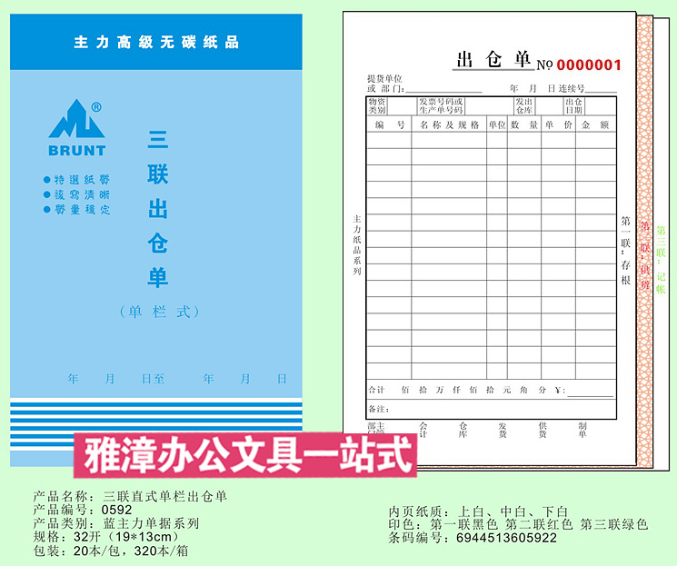 The main three-way out of the warehouse order 32K three-way vertical shipping document release document financial carbon-free copy with the base plate