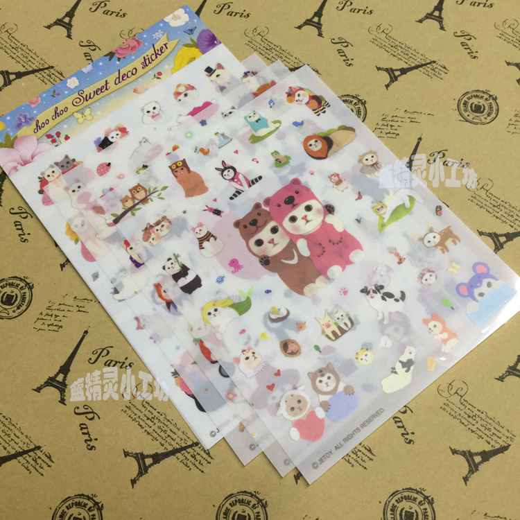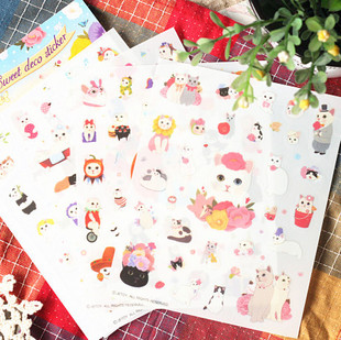 Jetoy sweet deco sticker Korean cute sweet cat PVC diary decoration stickers 4 sheets
