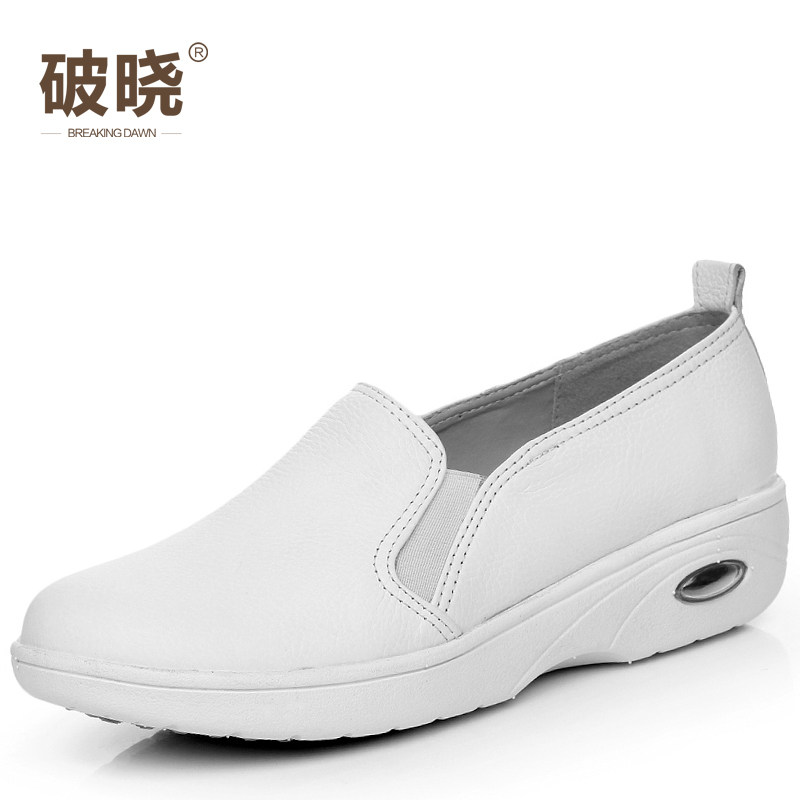 Daybreak spring and autumn women's shoes small white shoes single shoes casual shoes thick-soled nurse shoes white leather wedge platform heel