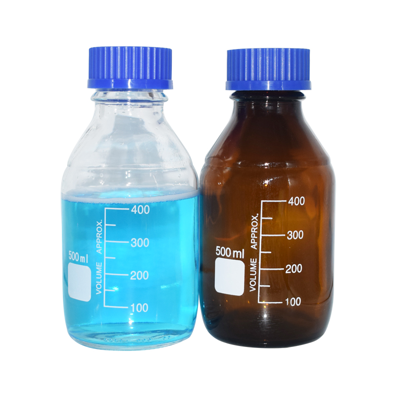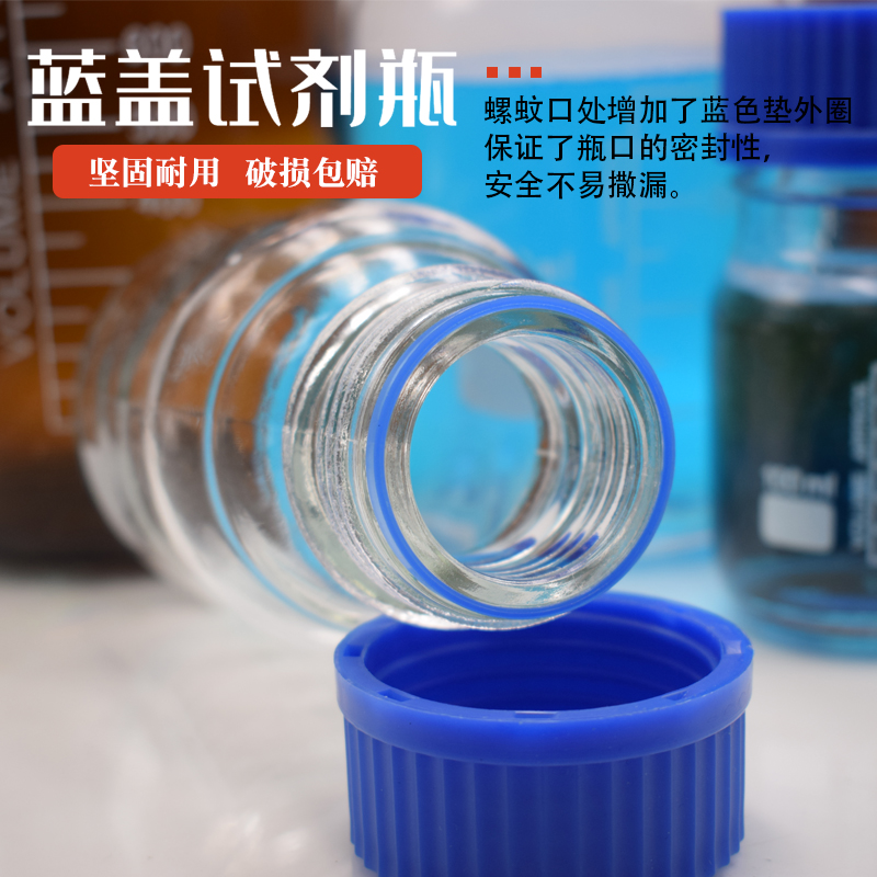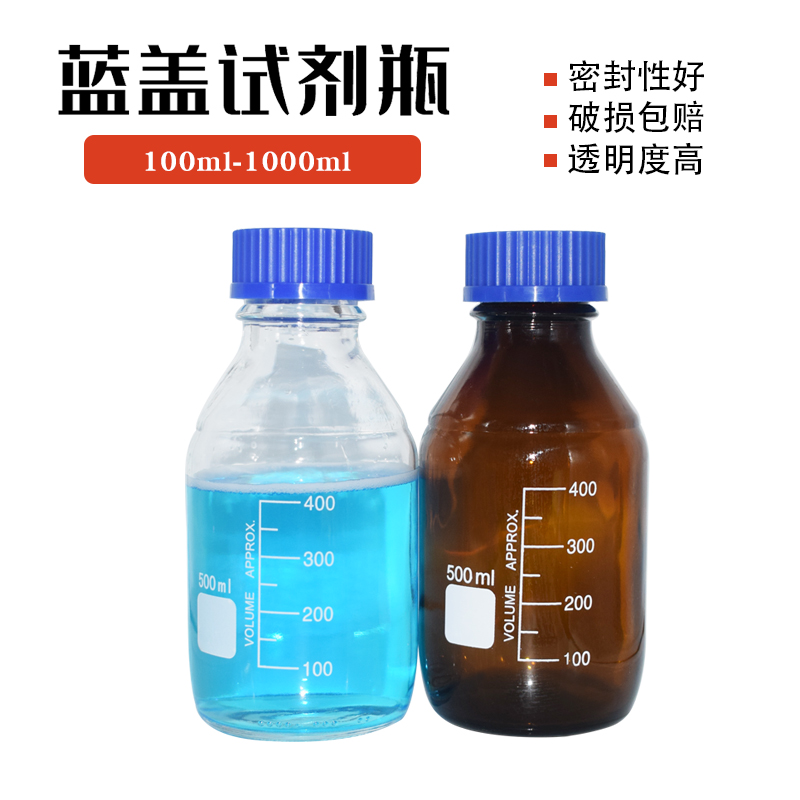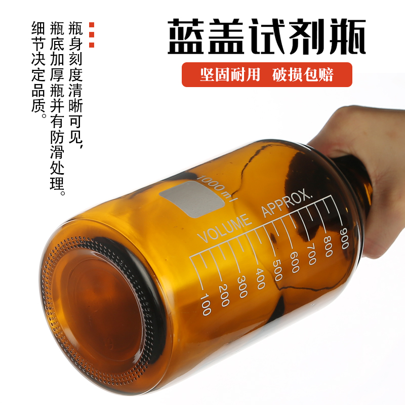 Single transparent tea brown glass blue cover reagent bottle sealed bottle 100250500 1000ml with scale screw mouth silk opening blue lid bottle