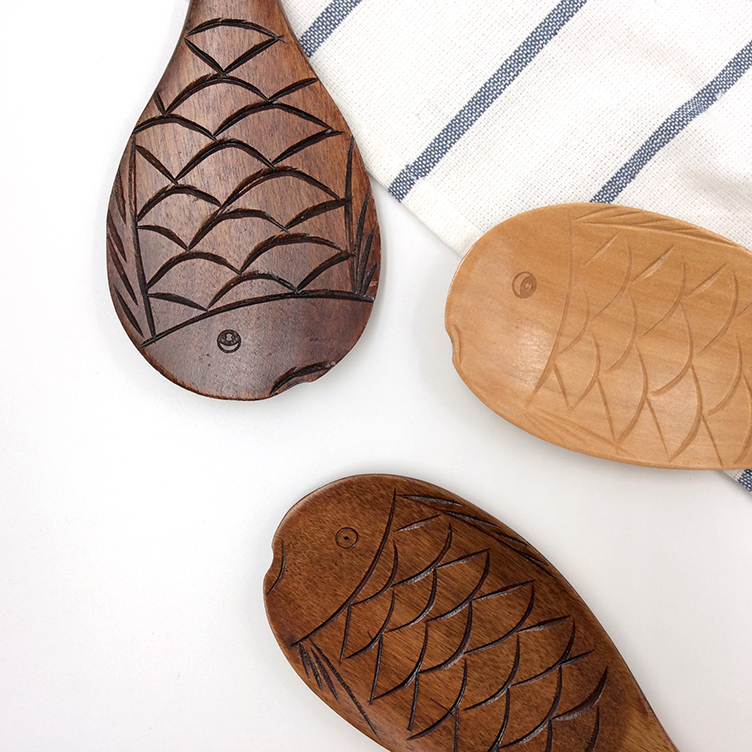 Manufacturer direct selling hand carved fish - shaped spoon kitchen wooden tableware