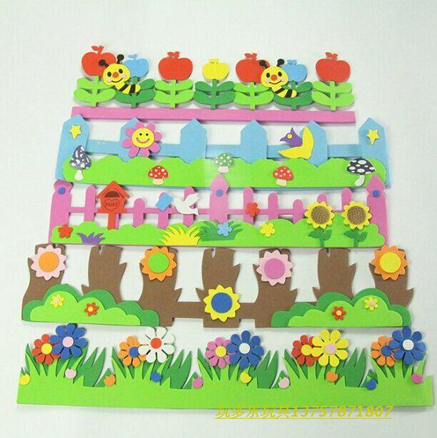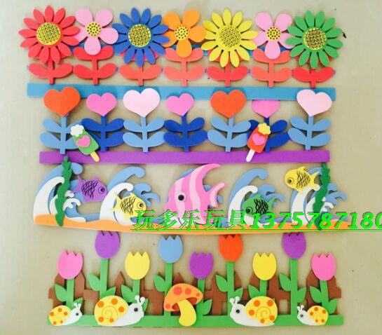Kindergarten classroom wall environment layout materials supplies EVA shed railing flower wall stickers foam wall decoration