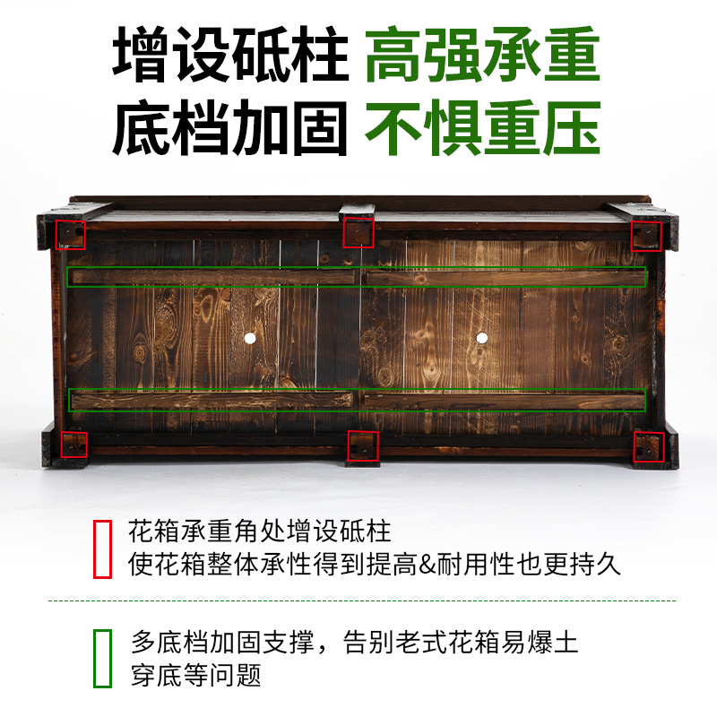 Anti-corrosion wood flower box Carbonized solid wood flower pot Wooden trough Balcony Outdoor long square King-size tree planting box