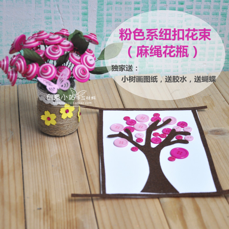 Point Dot button Flowers (Gift small tree frame) Hemp Rope button Flowers (Gift small tree frame) No weaver buttons Flowers (Gift of a small tree picture frame)