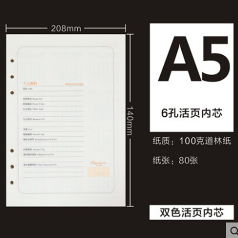 Workpage Notebook for core living page paper 6 hole of the inner core A5 horizontal rice yellow living page core