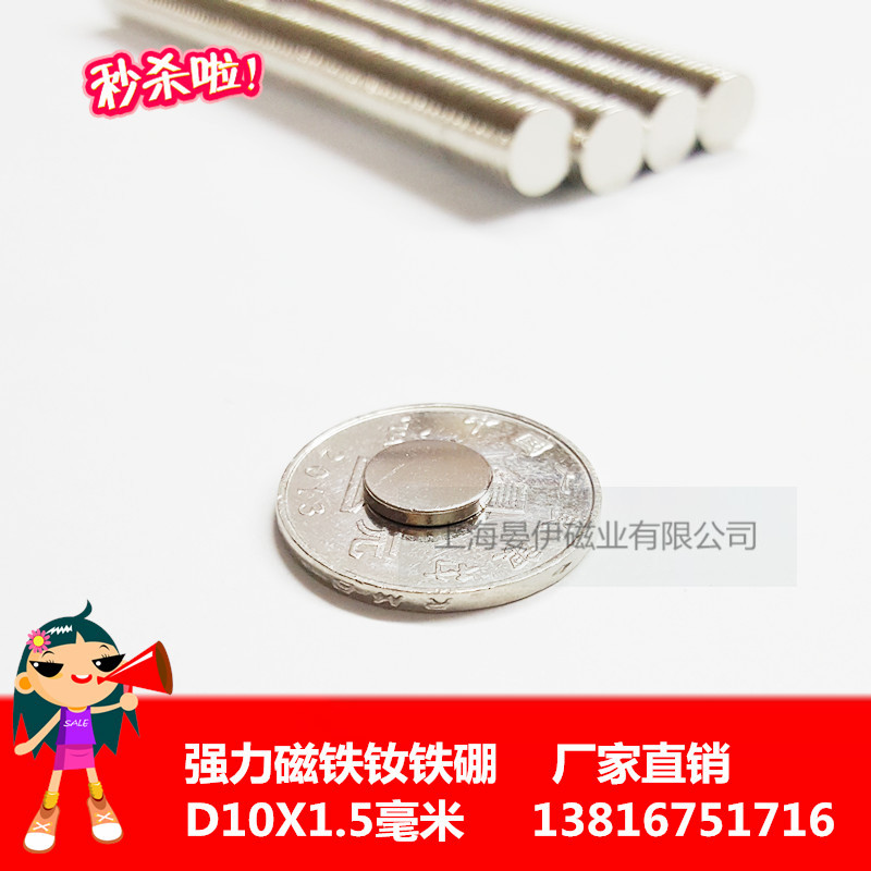 Rare earth magnet king magnet round D10X1 5mm neodymium iron boron magnet magnet strong magnetic 10*1 5mm