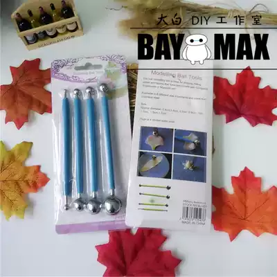 (Big white)Big ball stick 4-piece set of ultra-light soil soft clay to make petal pressure eye socket fondant sugar flower tool
