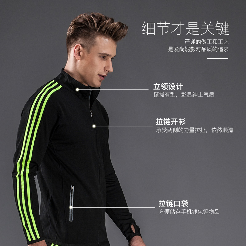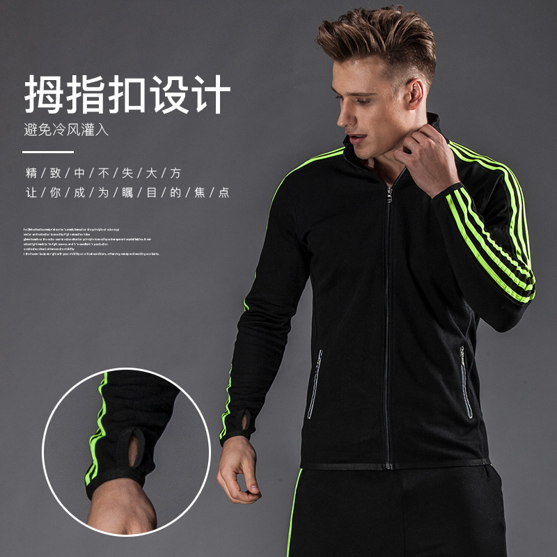 Running suit Men's autumn and winter casual gym sportswear Three-bar couple night running jacket Quick-drying clothes