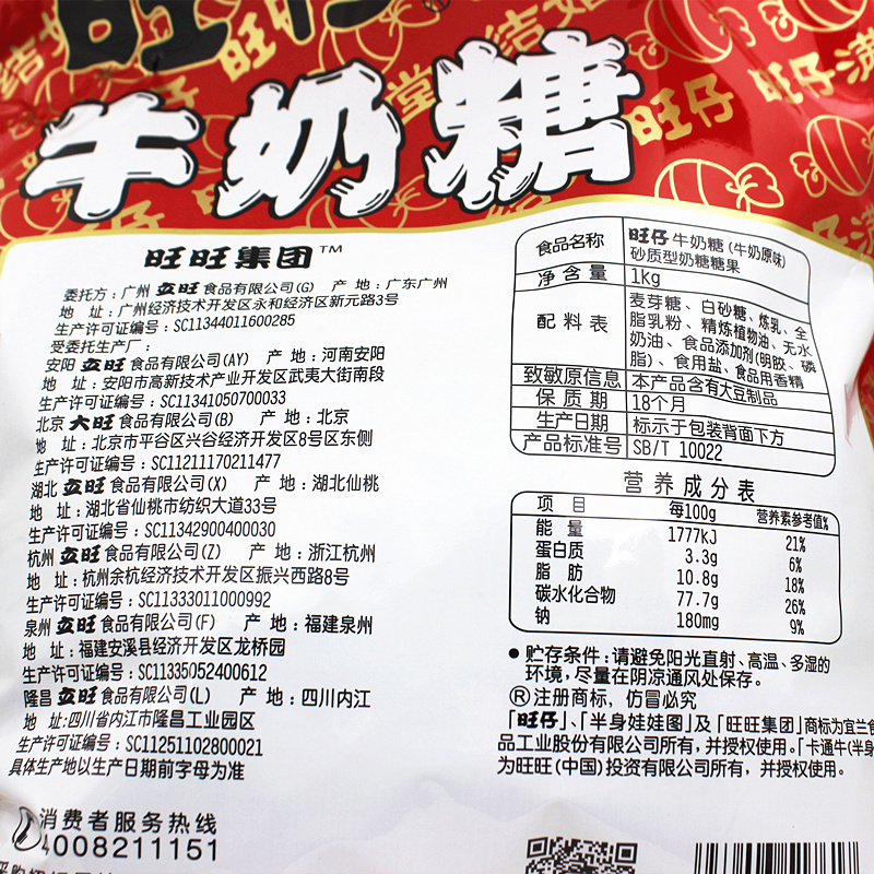 Wanzai Cow's Milk Sugar 1000g Whole Bagged Zero Food Tie Wedding Celebration Candy Wonky Milk Candy