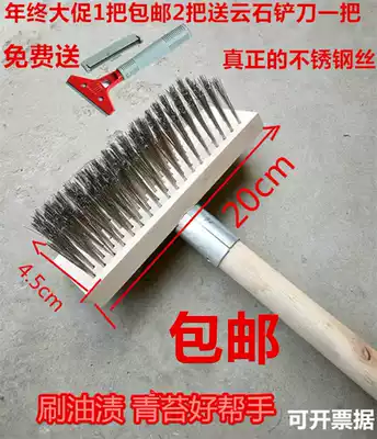 Long handle stainless steel wire hard floor brush steel wire brush rust removal oil stain Moss brush pool brush