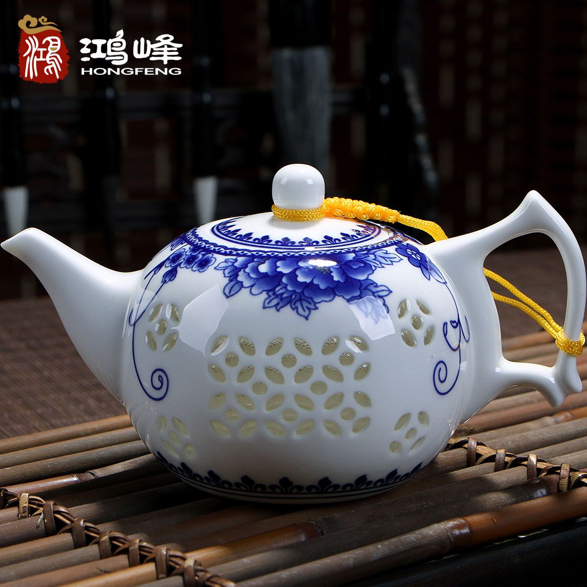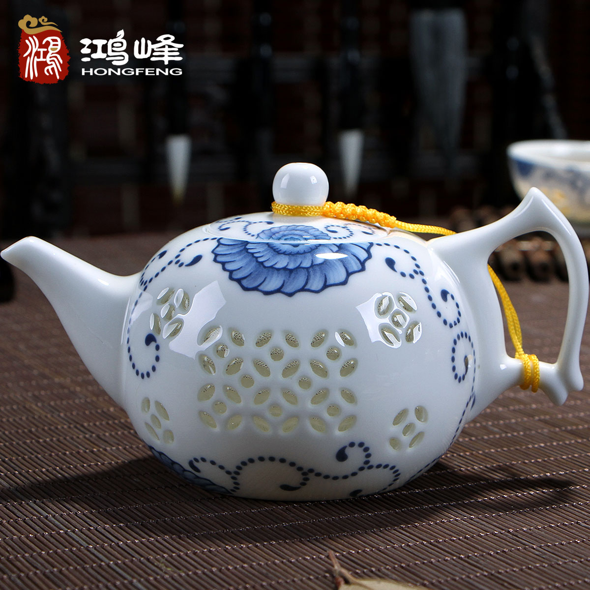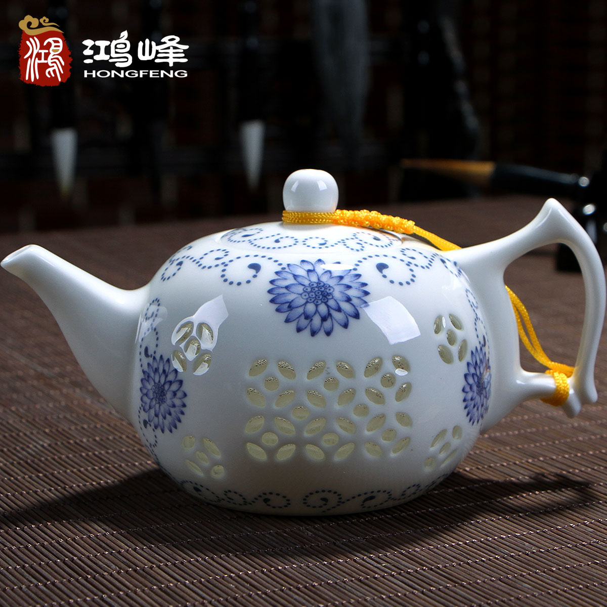 Linglong Blue Porcelain Tea pot single pot ceramic hollow kung fu tea set single small size brewing tea filter household
