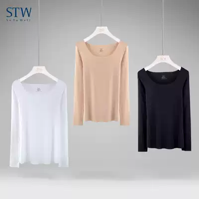 STW women's underwear bottoming autumn clothes Modal seamless warm top Round neck long sleeve T-shirt loose top flesh color