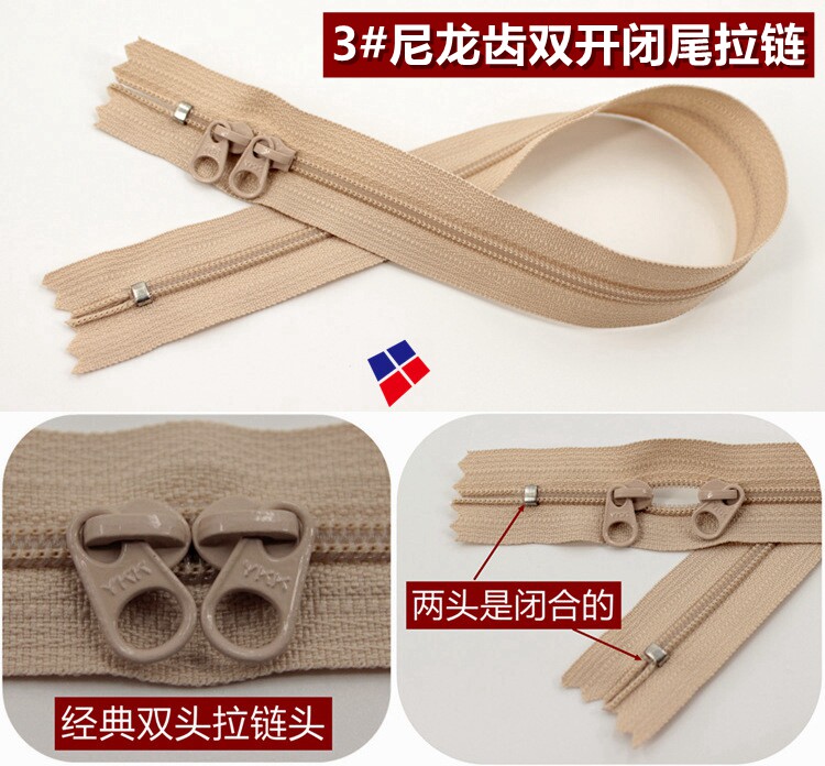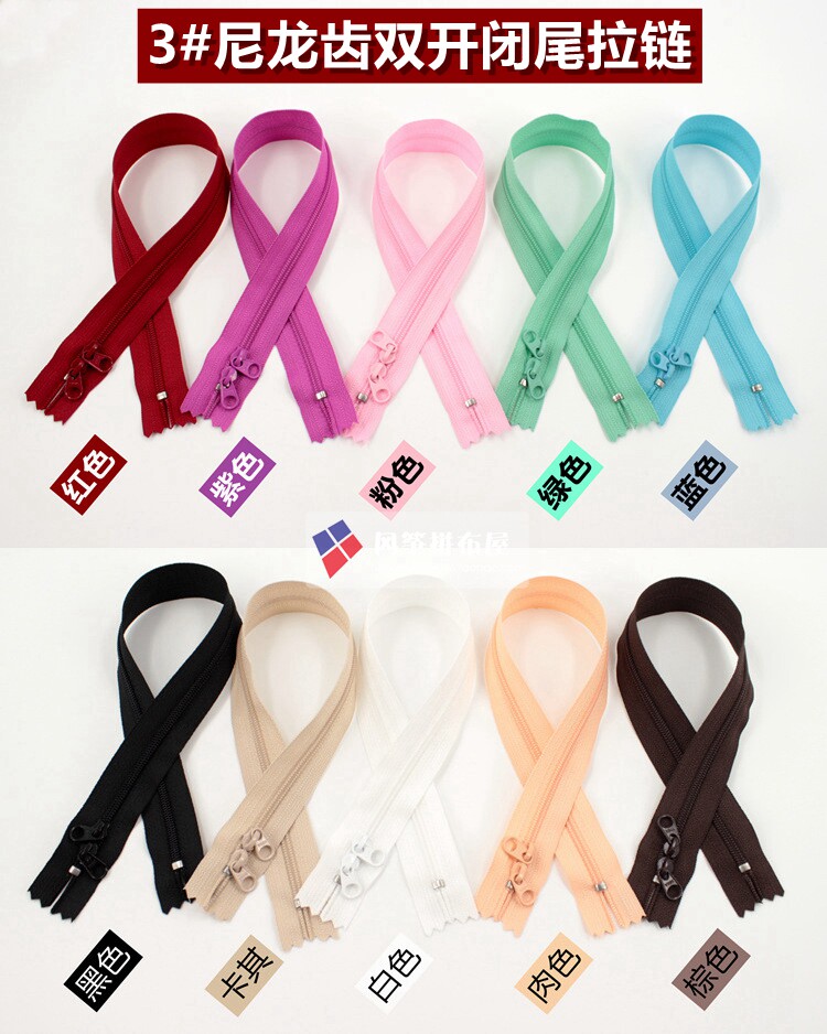 YKK3# nylon double opening and closing zipper handmade DIY (for luggage and pillows) 10 colors optional 40CM