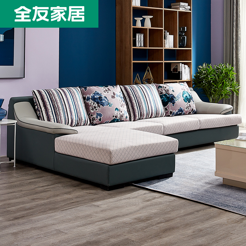 Quanyou furniture small apartment leather sofa living room three-seat removable and washable corner leather fabric sofa 73018