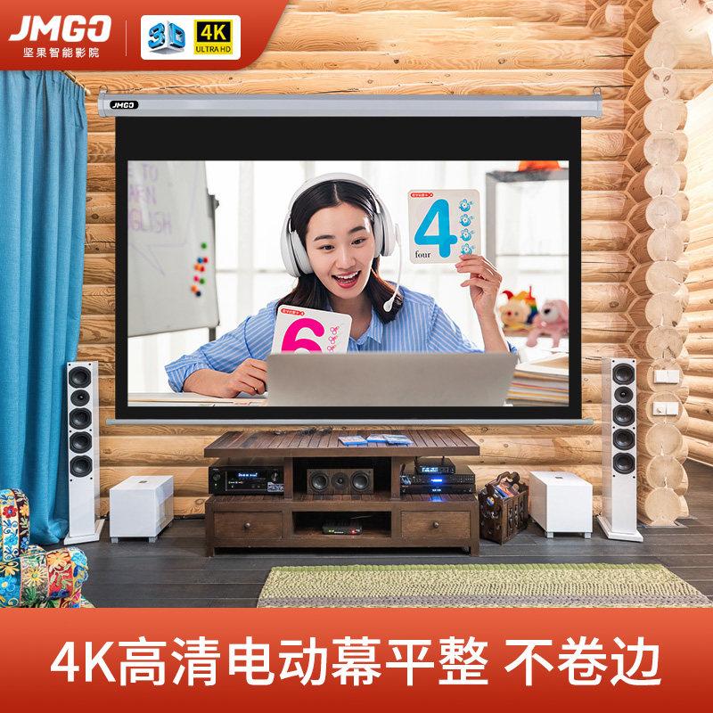 Nut projection curtain electric remote control wall hanging hanging ceiling household hook 100 inch 120 inch 150 inch 3D HD 16:9 lime glass fiber metal intelligent voice projector lifting anti-light