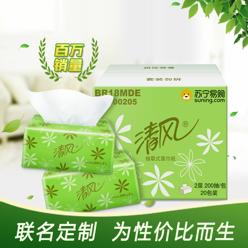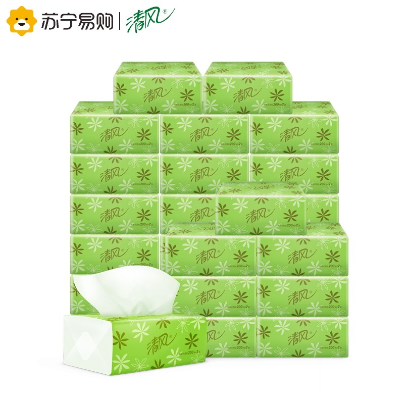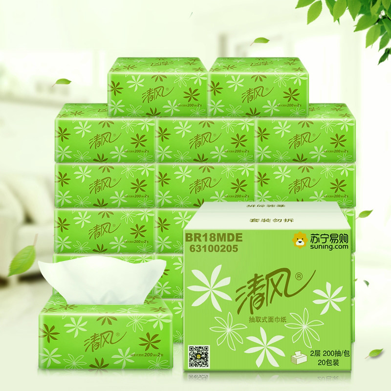 Qingfeng (638) paper light green flowers flexible 2 layers 200 pumping * 20 packs of toilet paper facial tissue napkins whole box