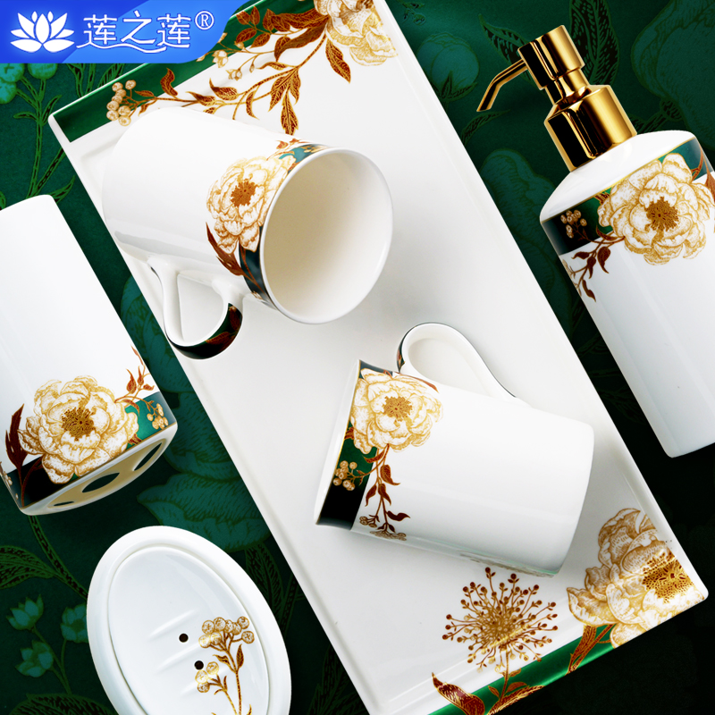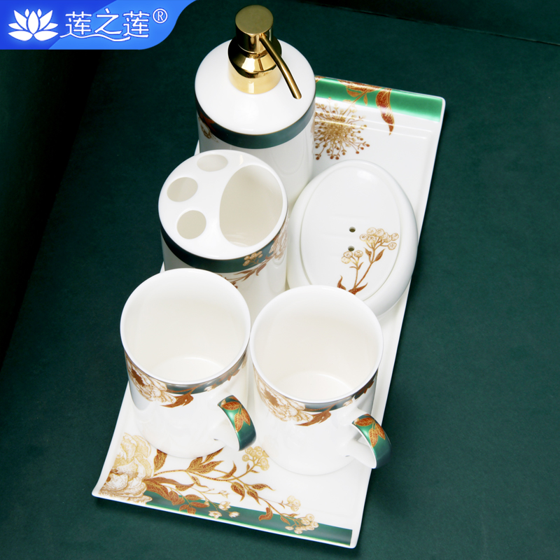 Lotus Lotus European bone China ceramic bathroom supplies Gargle cup Bathroom five-piece set Assembly creative tooth wash kit
