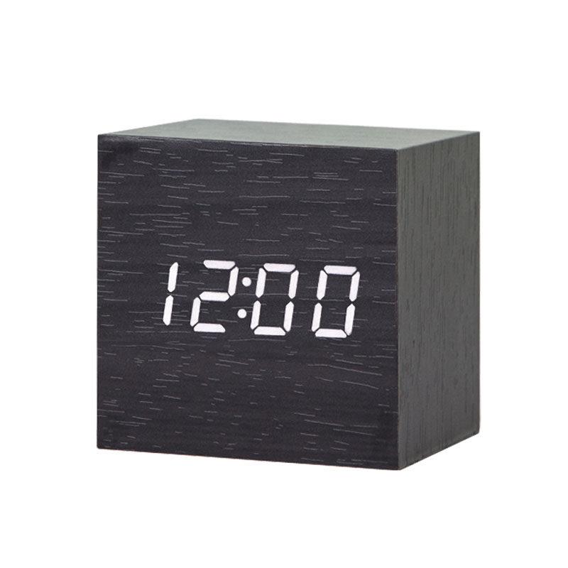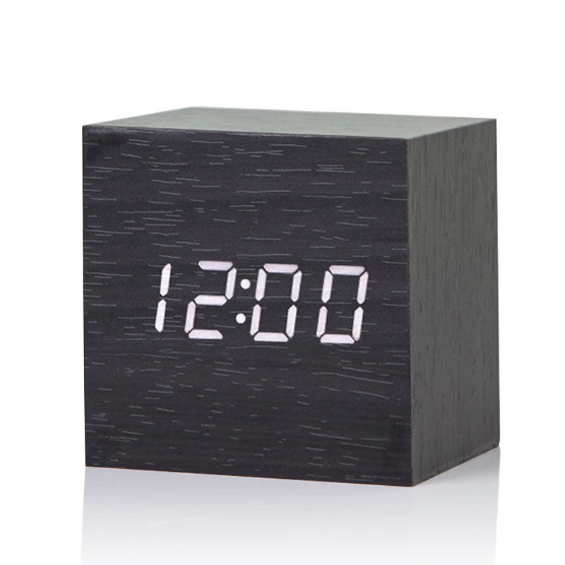 Fashion alarm clock LED sound control Wooden clock Creative electronic clock Bedroom bed clock Student seat clock Watch Temperature