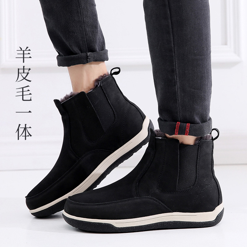 2022 New fur one snowboot men real leather plus boots winter warm cotton shoes thickened northeast men's boots