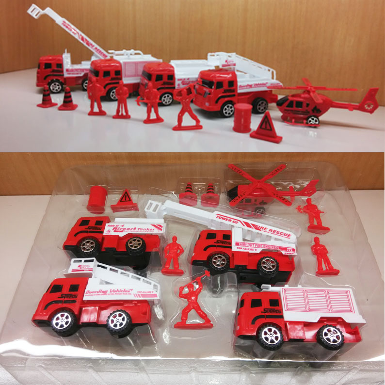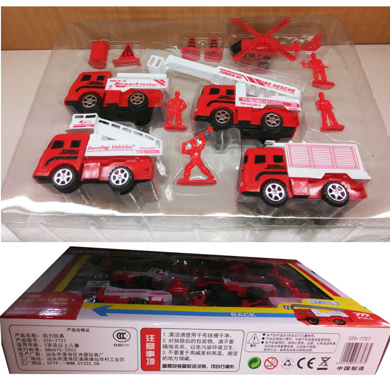 Educational toy car Pull back helicopter ladder set firetruck Plastic finished ambulance police car fire truck model