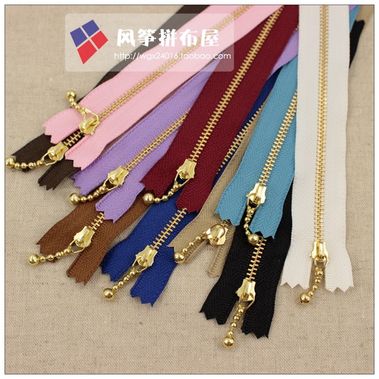 YKK3# Metal Tooth Closed Zip Classic Water Drop Tip Zip (Bag Pack Special) Gold Tooth 15CM