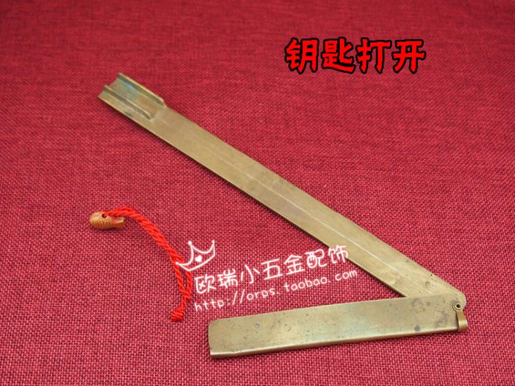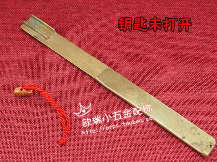 Imitation ancient pure copper horizontal open padlock Chinese key lock old small copper lock bolt lock cross open padlock key This store lock is used