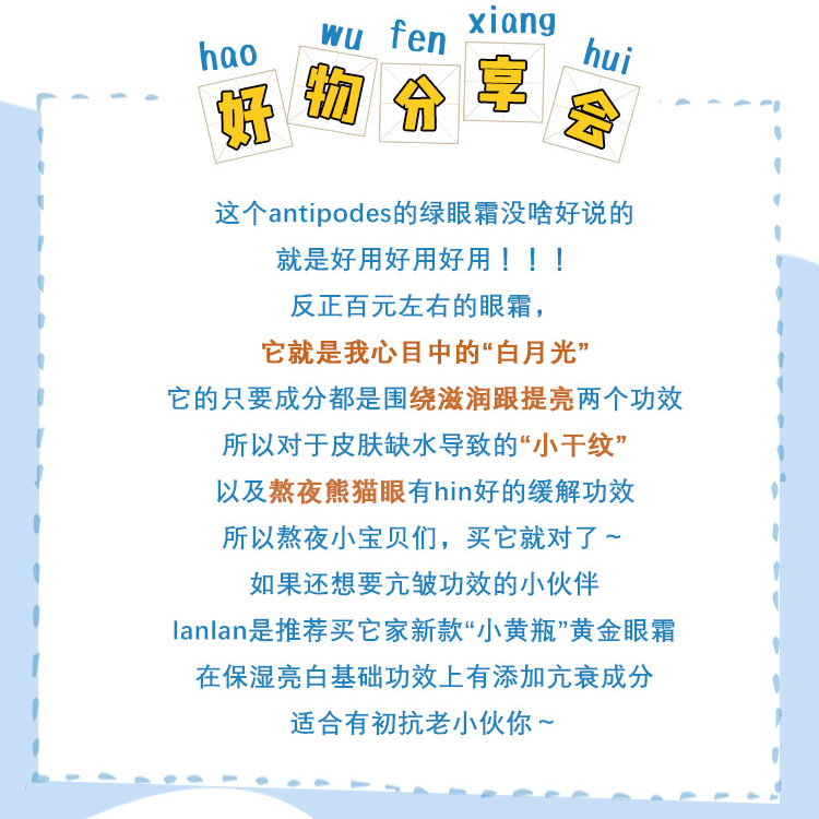 New Zealand Antipodes Antipodes Kiwi Avocado Eye Cream 30ml Fine lines Dark circles Bags under the eyes