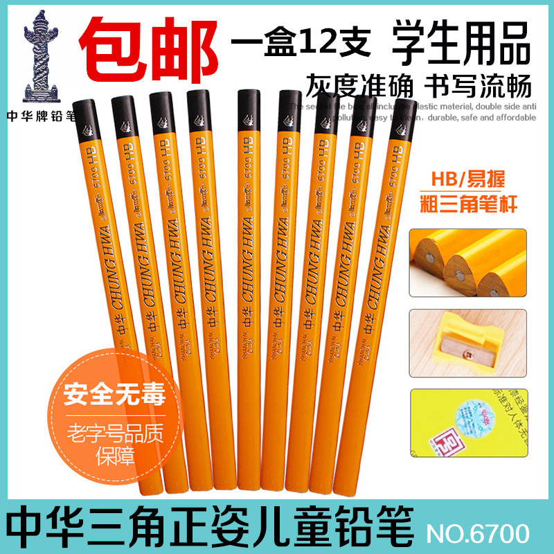 Zhonghua 6700 triangular pencil children's practice calligraphy pencil triangular rod practice calligraphy large triangle pencil thick pen holder 12 packs