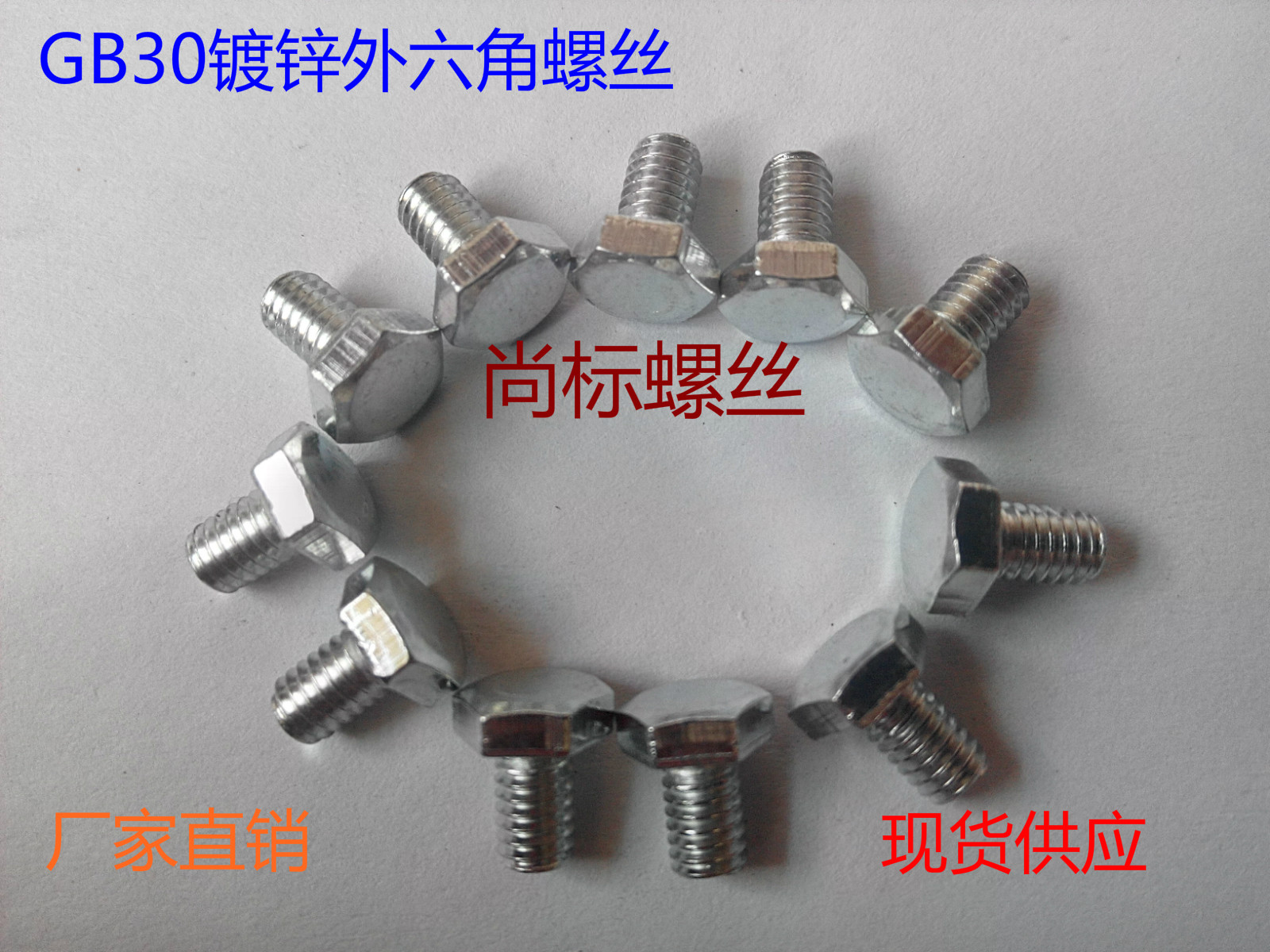 GB30 Galvanized Hexagon Bolts 4 Grade 8 Galvanized Hexagon Head Screws to Knock Bolts M12 Series