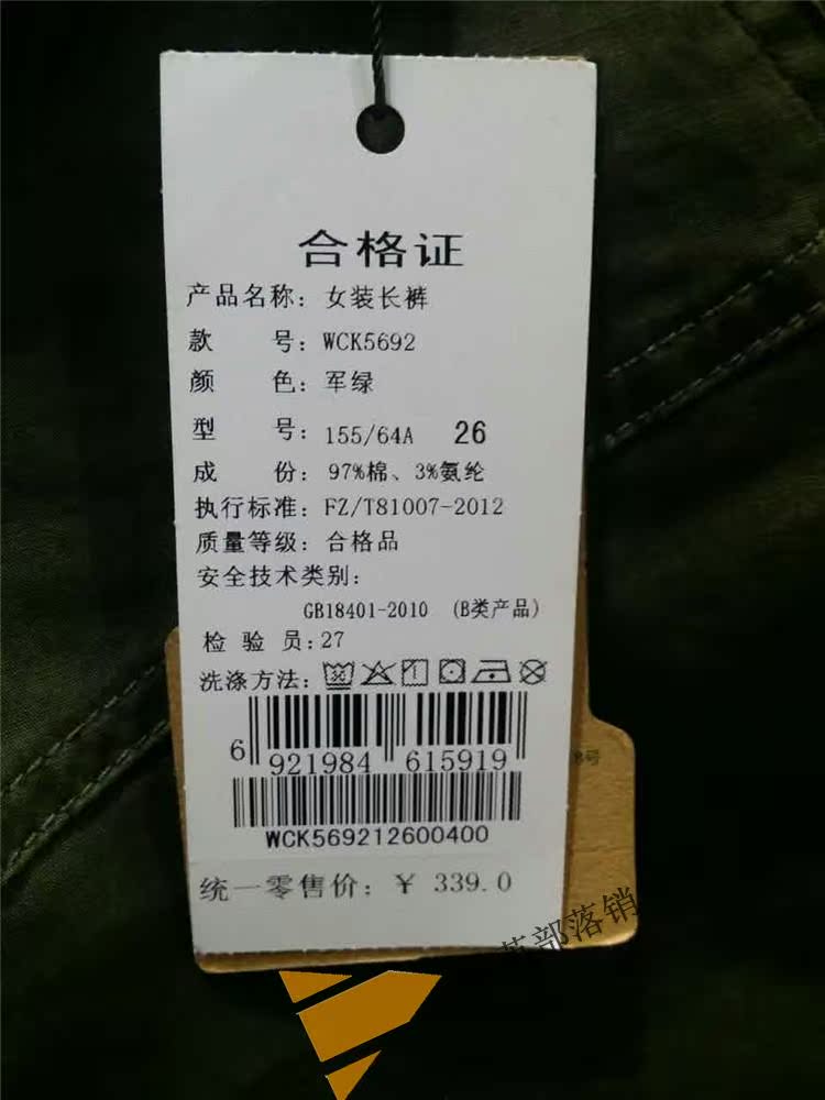 ELITE TRIBE ELITE TRIBE WCK-5692 Women's trousers ARMY green ARMY fans SIMPLE slim cotton fashion