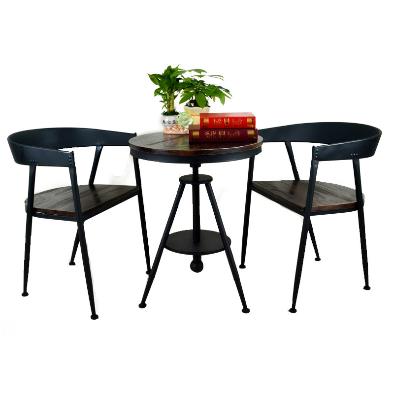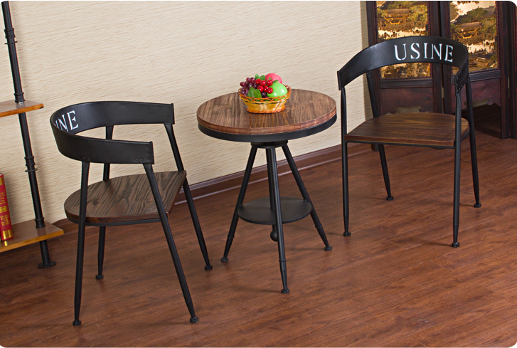 Retro outdoor leisure tables and chairs iron dining chairs cafe bar talks solid wood leisure milk tea shop rotating tables and chairs