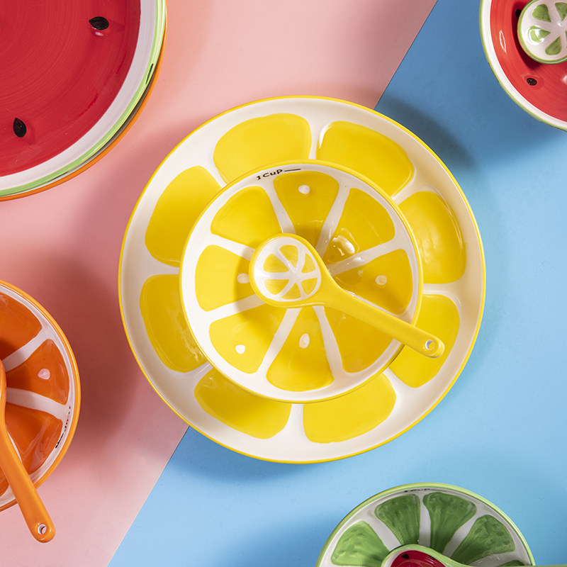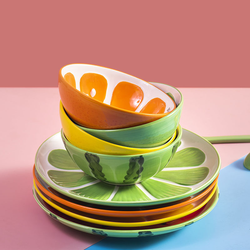 Watermelon 5 inch rice bowl Watermelon 7 inch noodle bowl Watermelon bowl and spoon Sweet orange 7 inch noodle bowl Sweet orange 8 inch plate Lemon 8 inch plate Lime 7 inch noodle bowl Lime 8 inch plate Lime bowl and spoon 1 set 7 inch noodle bowl 4 4 4 inch flavor plate Lime 5 inch rice bowl