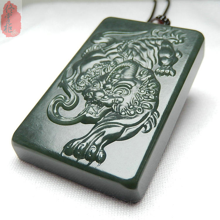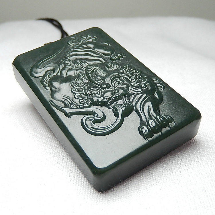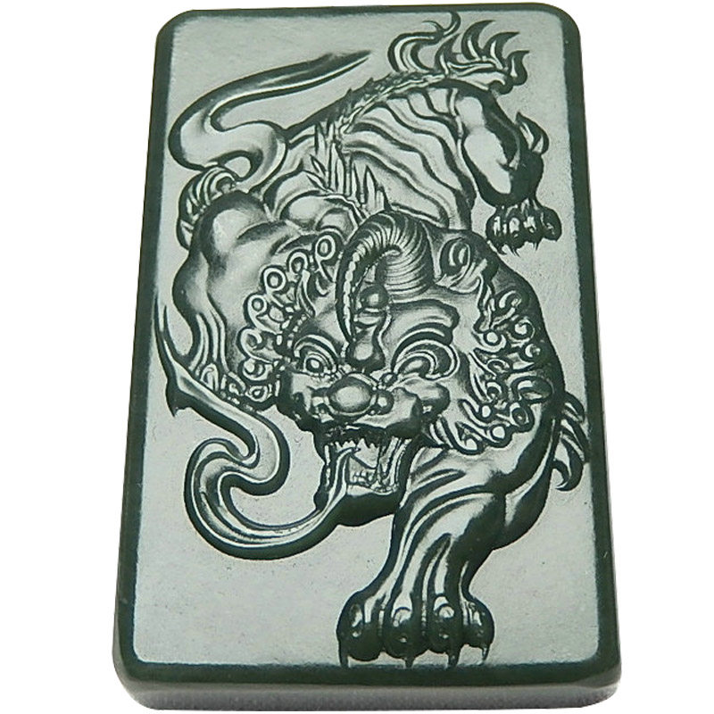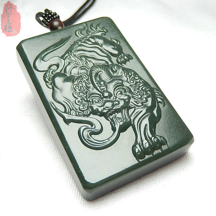 Jade jade brand Natural Xinjiang Hetian jade Green jade Black green jade pixiu jade pendant Jade pendant Male pendant Lucky pendant