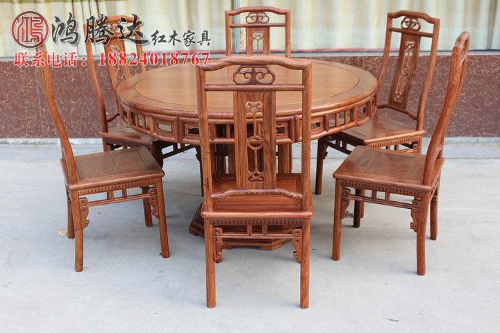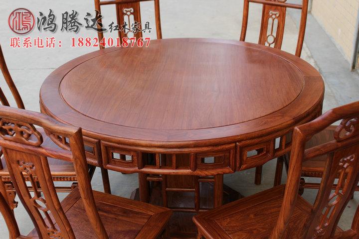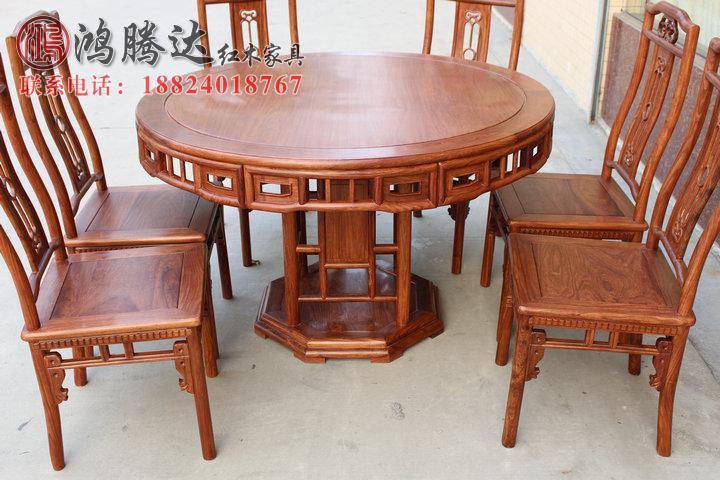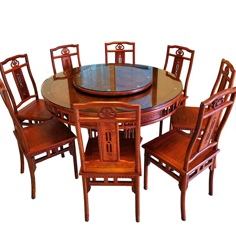 Red Wood Dining Table And Chairs Combined Solid Wood Furniture Home Round Table Africa Yellow Flower Pear Round Table Dining Table Big Round Table
