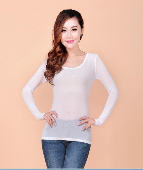 Spring and autumn Great U collar single layer Sexy overdraft net yarn Bottom Shirt Long Sleeve Fat MM Big Ruler Code Lace T-shirt Women's Clothing Blouse