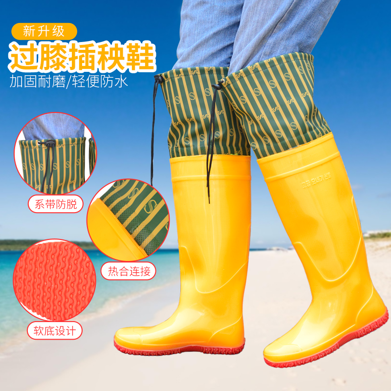 Xiantian boots, transplanting boots, waterproof boots, knee men and women paddy field boots, water shoes, rice field boots, water pants, soft flat farmland boots