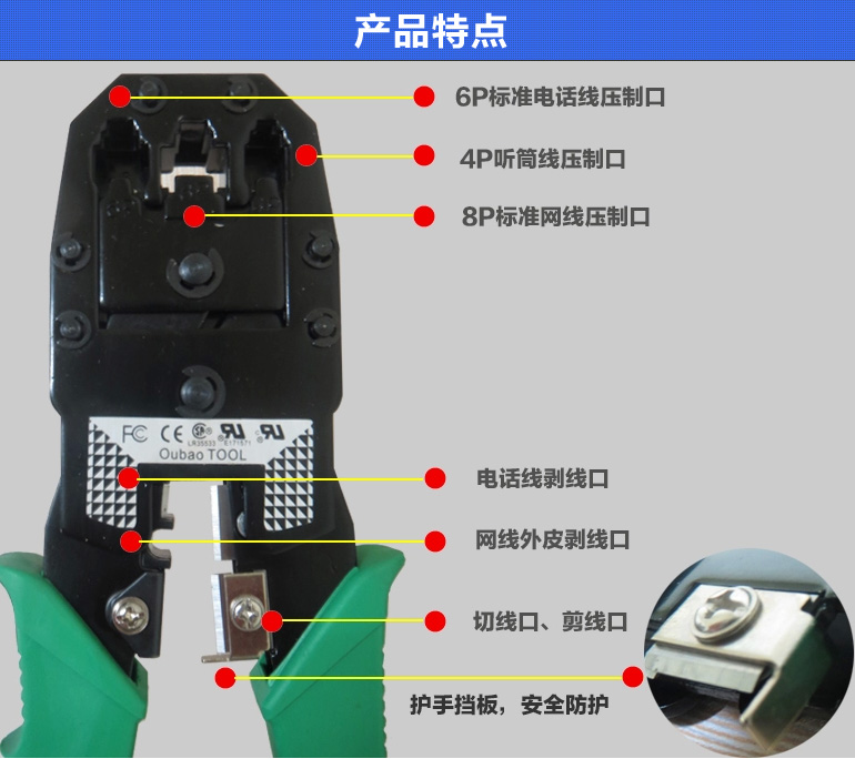 Net route press wire pliers suit Three-use pliers to send crystal head exfoliating knife sheath blade pressing press pliers