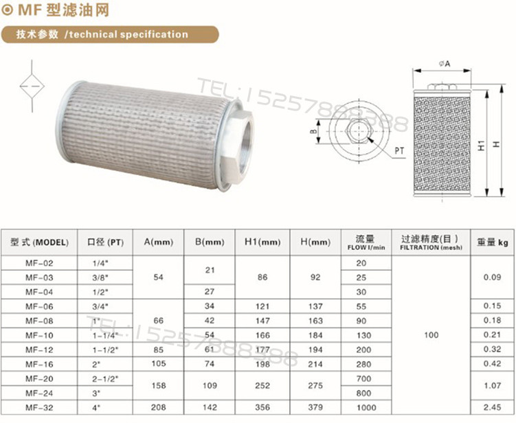 MF type stainless steel strainer filter Oil filter Oil filter core MF-02 04 06 06 08 10 12 16 20 24 32