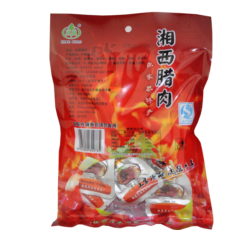 Fir Forest Xiangxi bacon Zhangjiajie specialty Fir Forest bacon 100 grams open bag ready-to-eat 3 bags